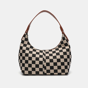 2025 Nova Moda Preto e Branco Quadriculado Simples e Elegante Saco De axilas Retro Quadriculado Dumpling Saco